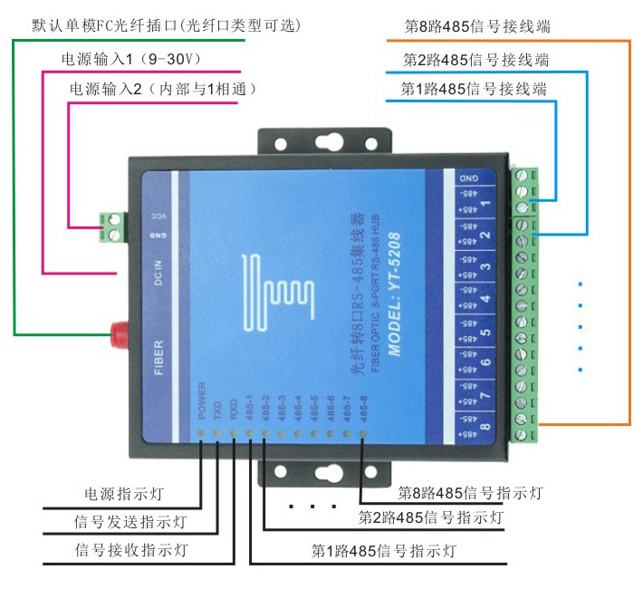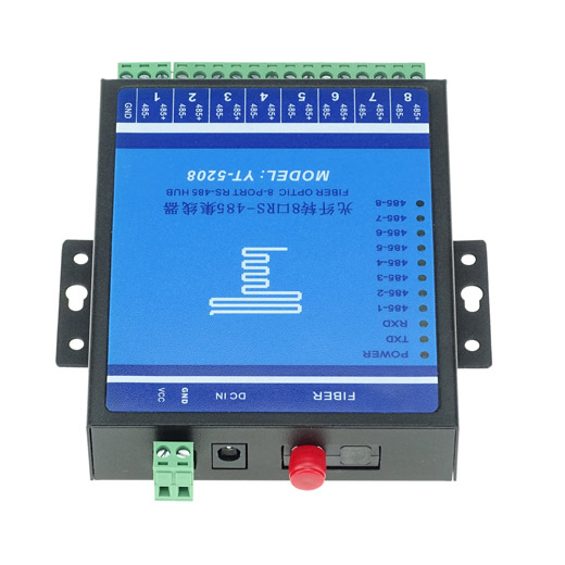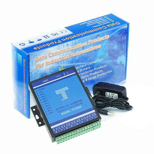 YT-5208 單模光纖轉(zhuǎn)8口RS485集線器具有抗干擾能力強,傳輸距離遠等特點,是大型485工程項目的首選。該產(chǎn)品突破了傳統(tǒng)RS-232/422/485接口通訊距離與通訊速率的矛盾,同時也解決了電磁干擾、地環(huán)干擾和雷電破壞的難題,大大提高了數(shù)據(jù)通訊的可靠性、安全性和保密性,可廣泛用于各種工業(yè)控制、過程控制和交通控制等場合,特別適合銀行、電力及對電磁干擾環(huán)境有特殊要求的部門和系統(tǒng)。