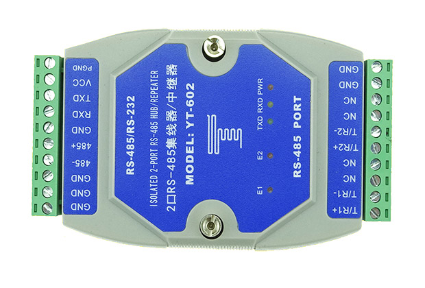 YT-602 RS-485HUB提供星型RS-485總線連接及延長。各端口都具有短路、開路保護。光電隔離2500V,用戶可以輕易改善RS-485總線結(jié)構(gòu),分割網(wǎng)段,提高通信可靠性。當(dāng)雷擊或者設(shè)備故障產(chǎn)生時,出現(xiàn)問題的網(wǎng)段將被隔離,以確保其他網(wǎng)段的正常工作。這一性能大大提高了現(xiàn)有RS-485網(wǎng)絡(luò)的可靠性,有效縮短了網(wǎng)絡(luò)的維護時間。合理的利用602RS-485HUB可以助您設(shè)計出獨特的高可靠的 RS-485系統(tǒng)。二、性能參數(shù)