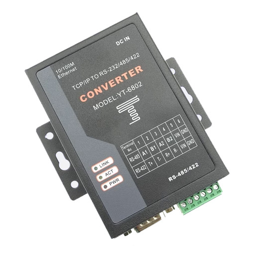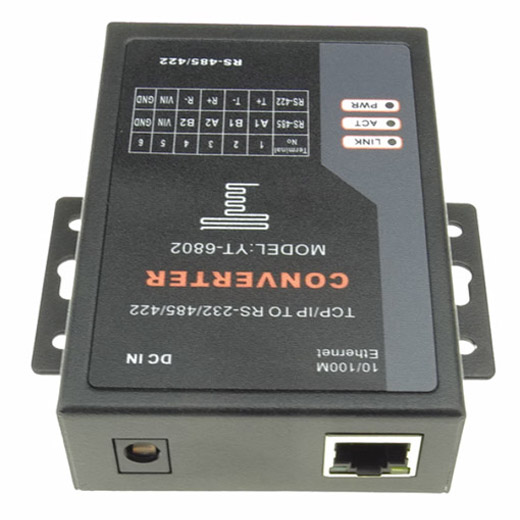 I. Product OverviewYT-6802B serial port server is a bidirectional conversion transmission device that converts two RS232/485 serial ports to the Ethernet TCP/IP protocol, transforming traditional serial port communication into network communication, and achieving fast networking of serial port devices. The converter adopts a transparent transmission method, and users do not need to be aware of the complex TCP/IP protocol. They can achieve network connection of existing serial devices without changing the program, saving you valuable time and existing investment. Simple and flexible configuration and extremely reliable performance meet any demanding application, making it your ideal choice.