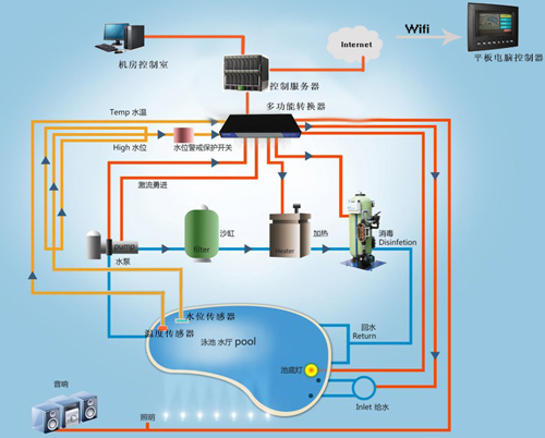 泳池自動化系統(tǒng),一種改善游泳池環(huán)境的智能自動化控制系統(tǒng);它可使各種泳池環(huán)境控制像家電操作一樣便捷。在池邊(或鄰近位置)輕觸按鍵,帶動現(xiàn)場相關(guān)執(zhí)行機(jī)構(gòu),既可調(diào)控水位,水溫,水質(zhì)以及周邊環(huán)境。