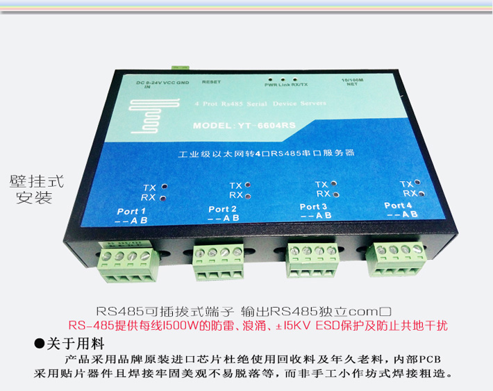4路RS485轉(zhuǎn)以太網(wǎng)串口服務(wù)器